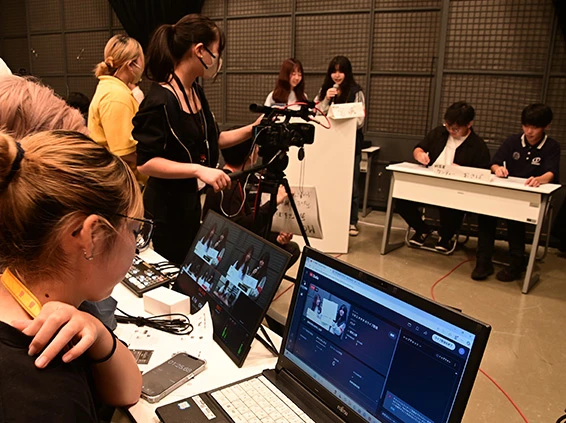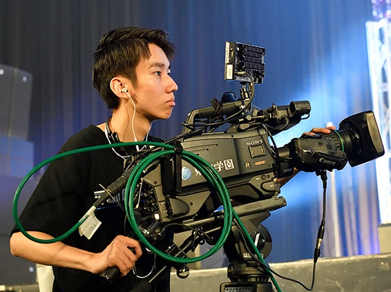 5学科合同でさまざまなジャンルの番組を制作。映像技術科はカメラマン、ビデオエンジニア、テクニカルディレクター、映像エディターを担当します。