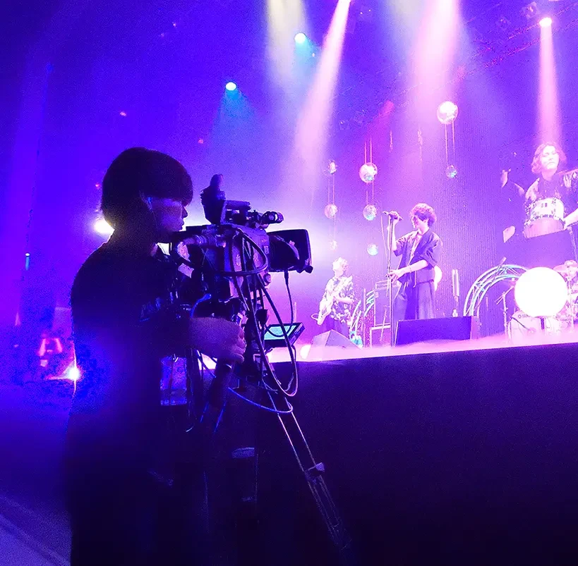 外部ホールにて、アーティストのライブビデオ制作過程を実体験。カメラワークやVE、編集などの基本テクニックを習得します。